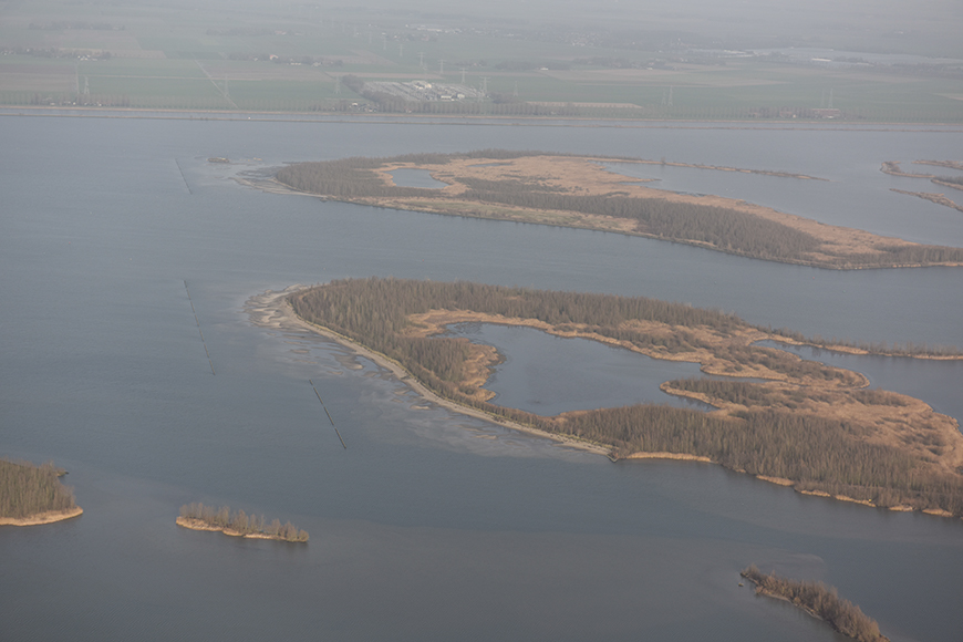 Eén van de eerste activiteiten van ons Team Ecologie was de aannemer adviseren over de inrichtingsvarianten die de meeste kansen bieden op succesvolle ontwikkeling van rietmoerassen met vitaal en robuust waterriet. Een belangrijk aspect hierin betreft het scheppen van de juiste voorwaarden voor de ontwikkeling hiervan, waarbij waterdynamiek, voeding en strijklengte een belangrijke rol spelen. Omdat we in het IJsselmeergebied te maken hebben met een niet-natuurlijk peilbeheer en er extreme weersomstandigheden kunnen opspelen is het advies gegeven om het aanplanten van riet te wijzigen in het gebruik van rietplaggen van elders uit het gebied, om zo de ontwikkelingskans van vitaal waterriet te vergroten (gebiedseigen riet heeft een voorsprong op import riet).